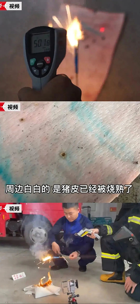 拿仙女棒举例,根据浙江省宁波市消防队的实验结果:点燃的仙女棒,外围最高温度可达500℃左右,可以轻易烫熟猪皮,燃烧过程中散落的火苗也可以迅速点燃地上的纸巾。