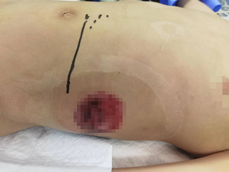 除此之外,安安(化名)的大肠和小肠也各有一处穿孔,左肾、脾脏均有挫裂伤。虽然手术中对比较严重的肾脏裂伤进行了修补,但因为腹腔内污染严重,为了预防术后严重感染、肠瘘等,医生还在安安的左侧腹部进行了大肠临时性造瘘。